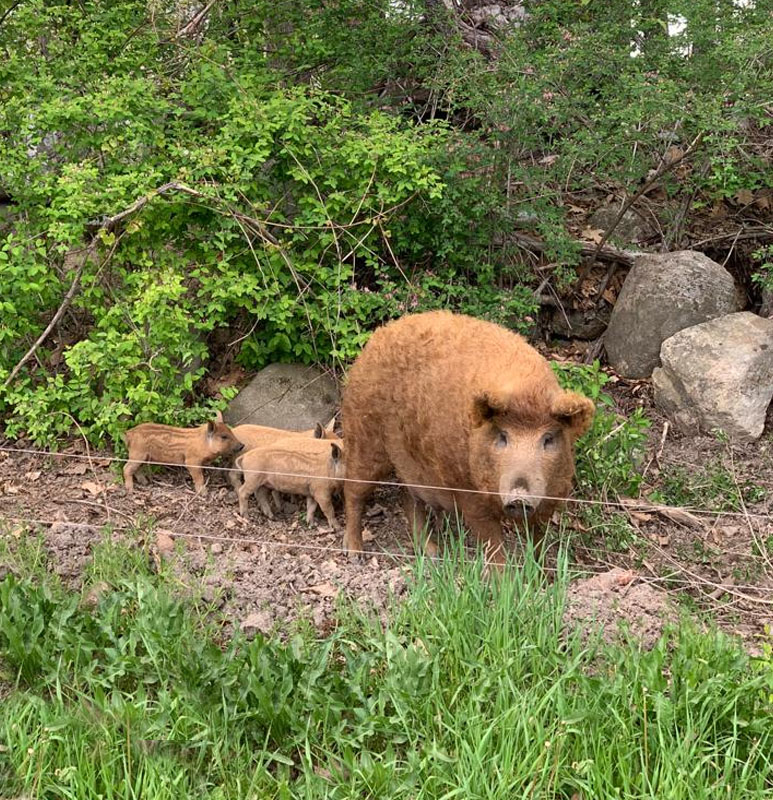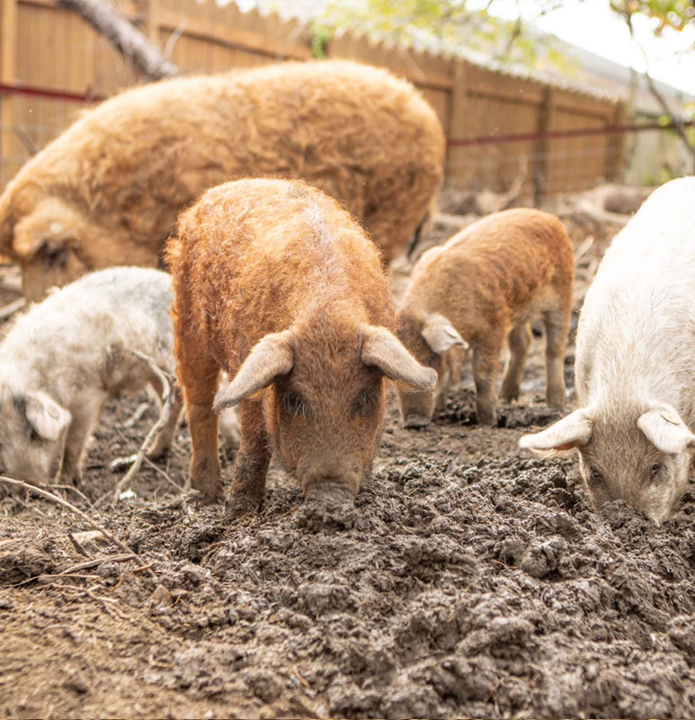 Mangalitsa is a breed of pig originating mainly from Hungary and the Balkans. It belongs to unimproved European pig breeds (such as the Iberian black pig and the Alentejo pig) that are directly descended from wild boar populations.